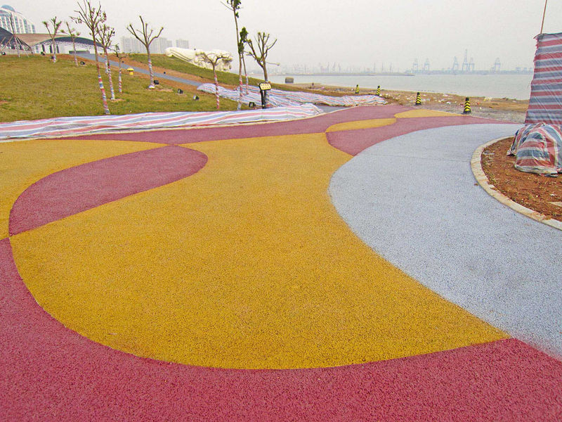 透水混凝土在滿足強度要求的同時,還需要保持一定的貫通孔隙來滿足透水性的要求,因此在配制時除了選擇合適的原材料外,還要通過配合比設計和制備工藝以及添加劑來達到保證強度和孔隙率的目的。透水混凝土由骨料、水泥、水等組成,多采用單粒級或間斷粒級的粗骨料作為骨架,細骨料的用量一般控制在總骨料的 20% 以內;水泥可選用硅酸鹽水泥、普通硅酸鹽水泥和礦渣硅酸鹽水泥;摻合料可選用硅灰、粉煤灰、礦渣微細粉等。投料時先放入水泥、摻合料、粗骨料,再加入一半的水用量,攪拌 30s ;然后加入添加劑(外加劑、顏料等),攪拌 60s;較后加入剩余水量,攪拌 120s 出料。
