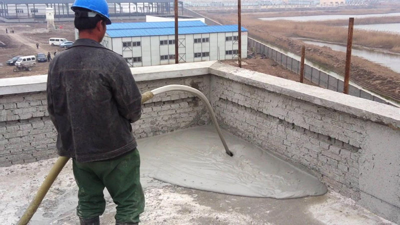(10)貧混凝土填層。由于使用可彎曲的軟管,泡沫混凝土具有很大的工作度及適應(yīng)性,因此它經(jīng)常用于貧混凝土填層。如對隔熱性要求不很高,采用密度為1200kg/m3左右的貧混凝土填層,平均厚度為0.05m;如對隔熱性要求很高,則采用密度為500kg/m3的貧混凝土填層,平均厚度為0.1- 0.2m。